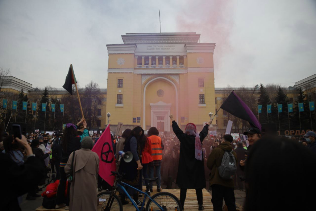 Täällä on liberaali nuorisoliike nimeltä Ojan Qazaqstan (Herää, Kazakstan) joka on tälläkin hetkellä aktiivinen. He järjestävät julkisia tapahtumia, performansseja, marsseja ja poliisi usein häiritsee heitä. Ojan Qazaqstan alkoi banneritempauksesta, jonka Beibarys Tolymbekov ja Asja Tulesova järjestivät kaupungin maratonissa 2019. Heidät vangittiin 15 päiväksi ja se keräsi paljon huomiota etenkin sosiaalisessa mediassa, mikä oli uutta. On olemassa salaliittoteria, että kaikki nämä aktivistit ovat hallitusmielisiä, koska kukaan ei ole nyt vankilassa, mutta en usko että se on totta. Tunnen monet heistä henkilökohtaisesti. He myös tukevat feministisiä ja LGBTQ-kamppailuita. Toisella puolella – enimmäkseen netissä ja hallituksen media-alustoilla – monet väittävät että kaikki tämä on “lännen” tekosia.